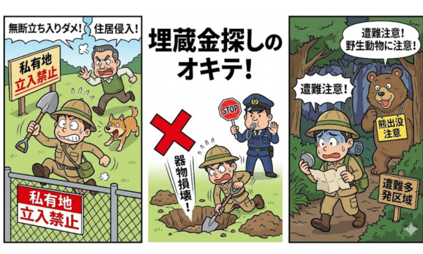 仮に埋蔵金を探しに行くとしても、法律や安全面の配慮は必須